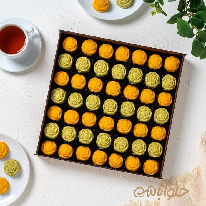 - شامل 28 عدد ترحلوا زعفرانی و 21 عدد حلوا پستهای